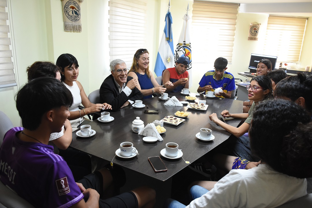 En ese marco, en la mañana de hoy, el rector Ing. Oscar Arellano recibió a los estudiantes y a sus docentes, les dio la bienvenida, dialogó con ellos, escuchó sus experiencias y les brindó consejos sobre la vida universitaria. Del encuentro participaron además la secretaria de Relaciones Interinstitucionales e Internacionales, Dra. Viviana Quiroga, junto a representantes de la asociación, entre ellos Florencia López, licenciada en Trabajo Social e integrante del equipo de Minkai.