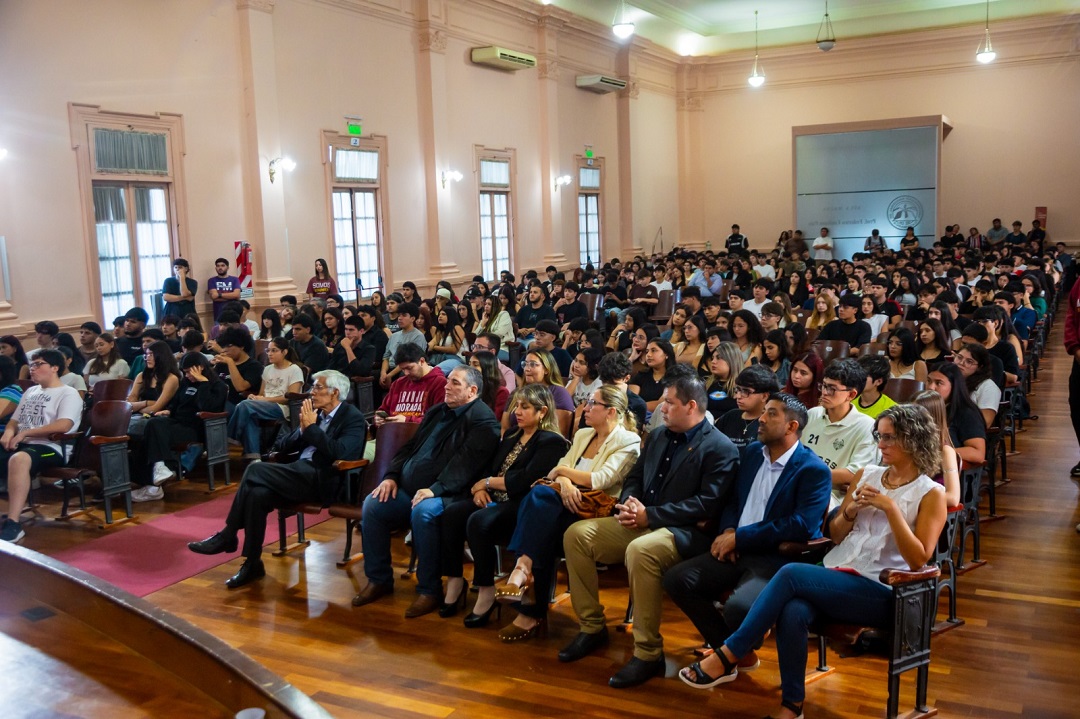 Durante su mensaje, el Rector destacó la satisfacción de recibir a los nuevos estudiantes y remarcó que la universidad pública no solo debe formar profesionales, sino también personas con valores y compromiso social. Asimismo, reafirmó el acompañamiento institucional a lo largo de la trayectoria académica mediante distintos programas de apoyo, como becas, comedor universitario y asistencia económica.