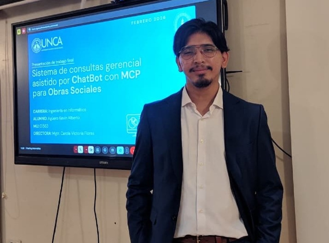 Un joven de la Facultad de Tecnología y Ciencias Aplicadas de la UNCA presentó como trabajo final un sistema de consultas gerenciales web asistido por un chatbot, diseñado para facilitar el acceso a información y apoyar la toma de decisiones dentro de organizaciones vinculadas a obras sociales.