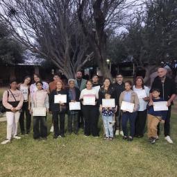 Asimismo, se realizó la entrega de certificados a doce de los dieciséis estudiantes que completaron de manera exitosa el Nivel 3 del Curso de Alfarería, dictado en la localidad de Las Palmas, departamento Capayán. Esta propuesta fue organizada por la Escuela de Formación Profesional y de Oficios de la Secretaría de Extensión.