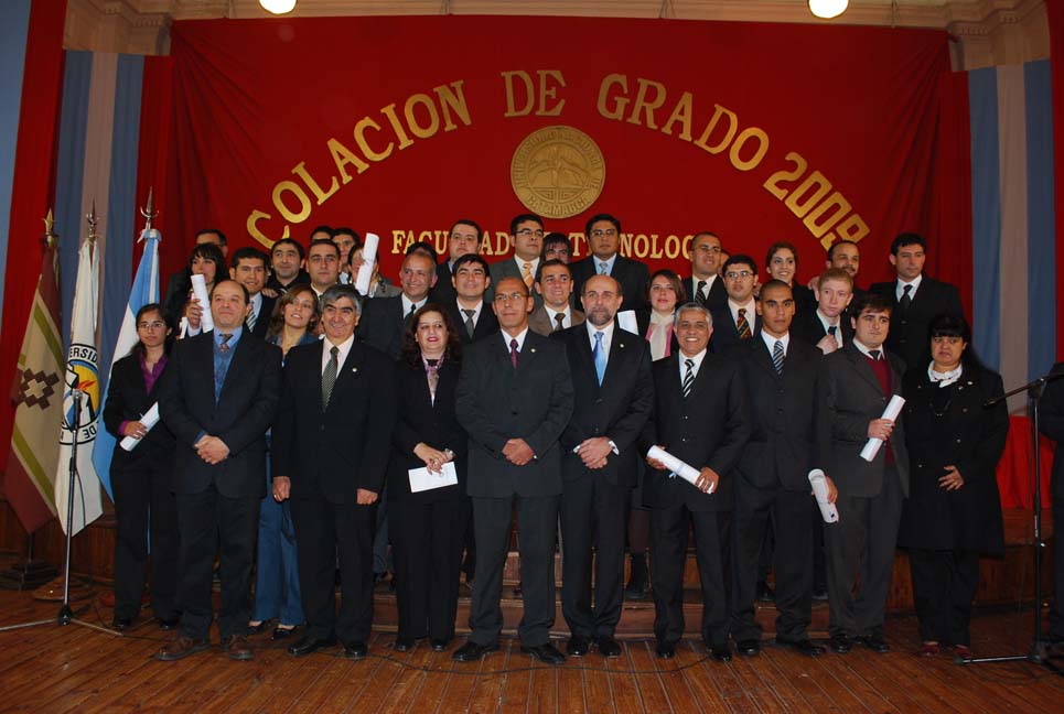 Una de las instancias más sobresalientes de esta graduación fue cuando el Rector de la Alta Casa de Estudios, Ing. Flavio Fama, tomó el juramento de rigor a los egresados de la promoción 2008 y 2009, tras lo cual le hizo entrega de los correspondientes diplomas; momento que fue compartido por el Decano de la Facultad de Tecnología, Ing. Carlos Savio con el acompañamiento del Secretario Académico de la Facultad, Ing. Hugo Dip.